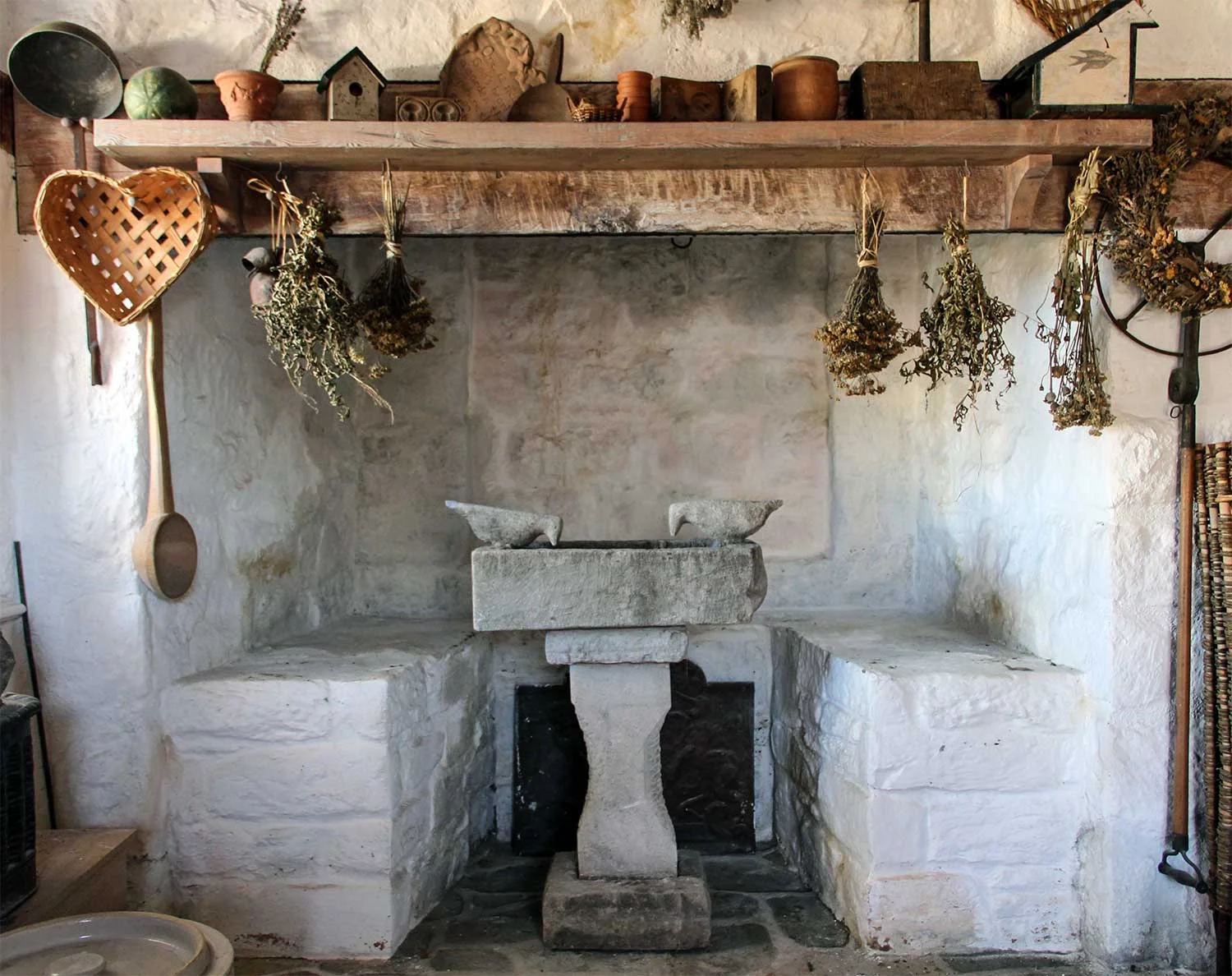 William Edmondson Birdbath, circa 1940s, on display in Oak Spring Garden's Honey House.