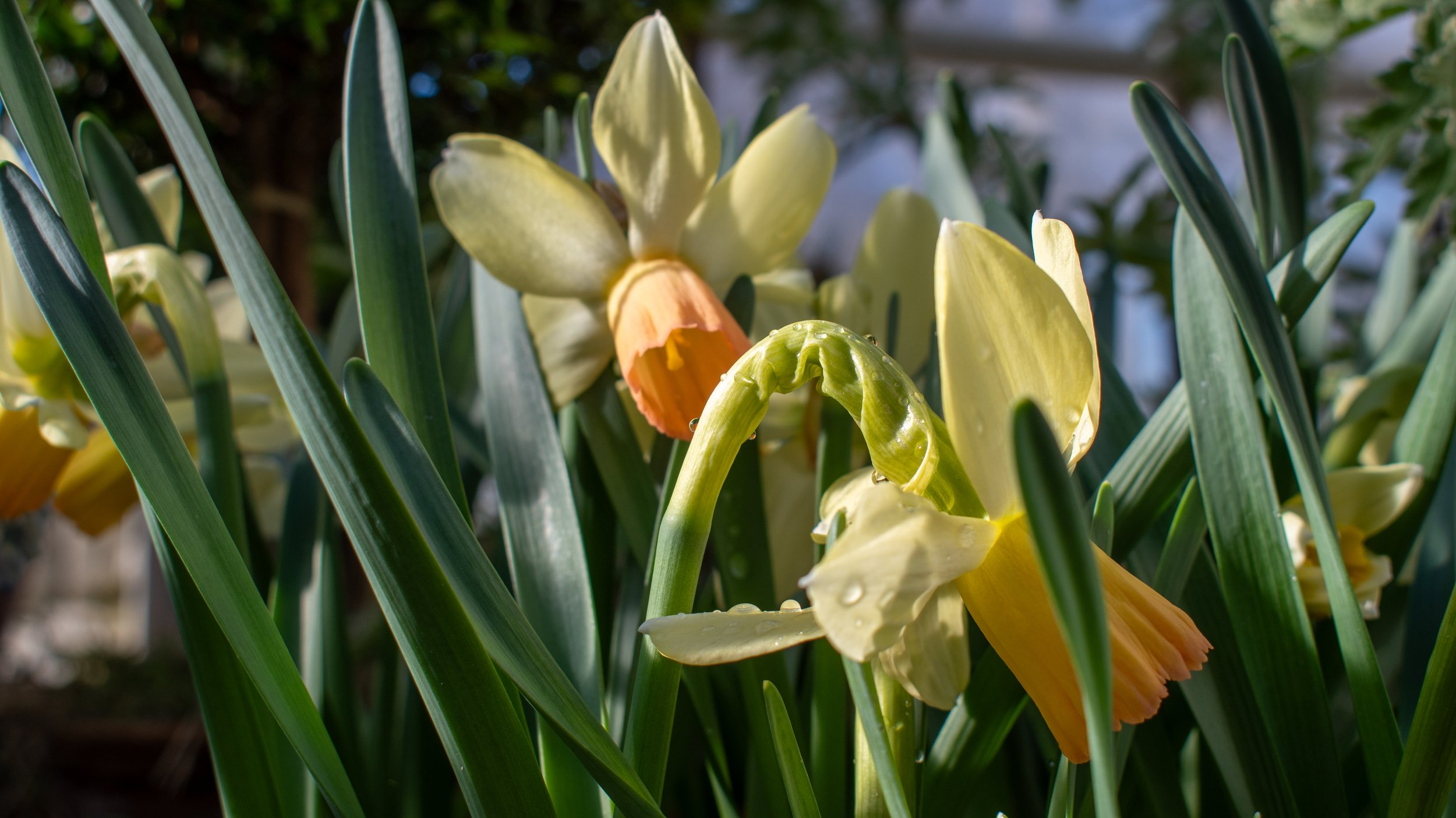 Narcissus ‘Ice Follies’ is a classic large-cupped daffodil introduced in the mid-20th century and prized for its elegant, luminous presence in early spring. The flowers open with creamy white petals surrounding a soft yellow cup that gradually fades to near white, giving the bloom a refined, porcelain quality as it matures. Sturdy, reliable, and excellent for naturalizing, it returns faithfully year after year.