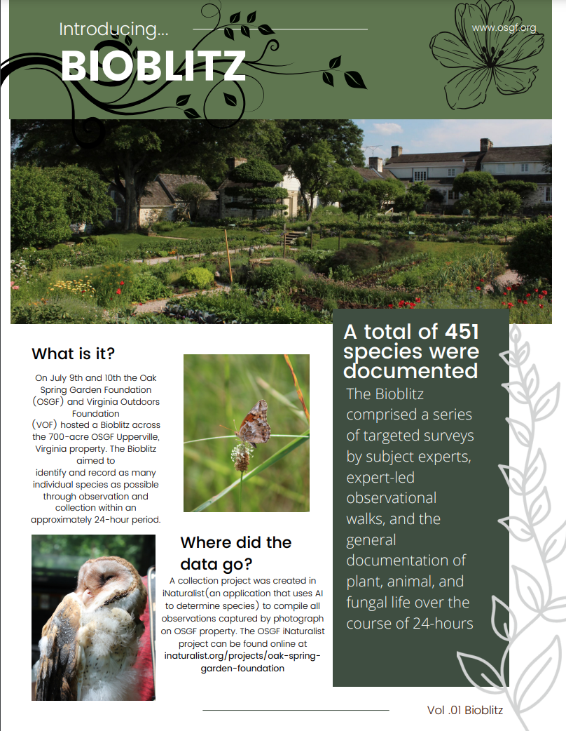 To see more Oak Spring wildlife and learn about our Biodiversity Management Team’s current conservation and surveying projects, follow us on Facebook, Instagram, and Twitter.
